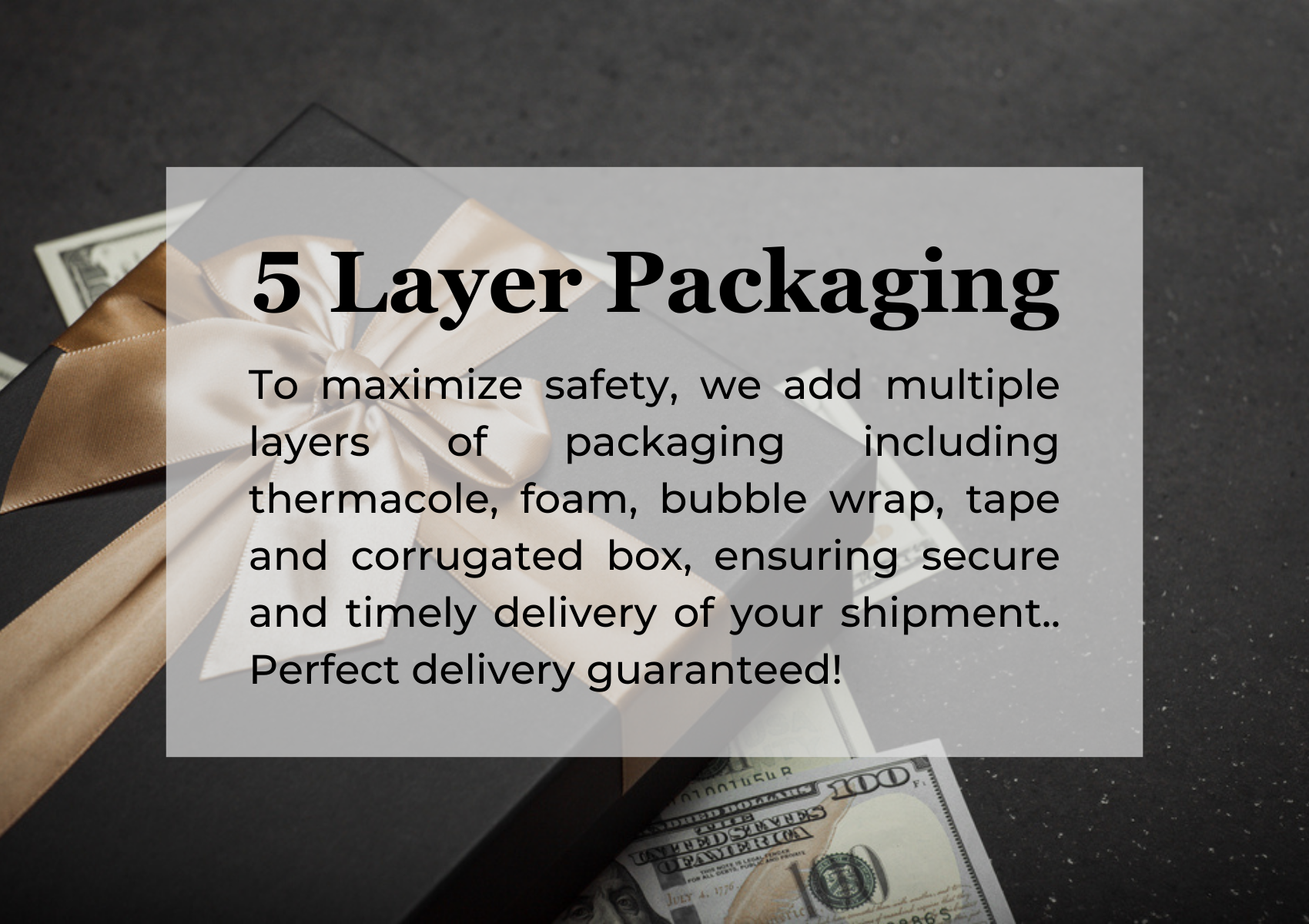 We provide 5 layer break-proof packaging to ensure there is no chance of breakage during transit.